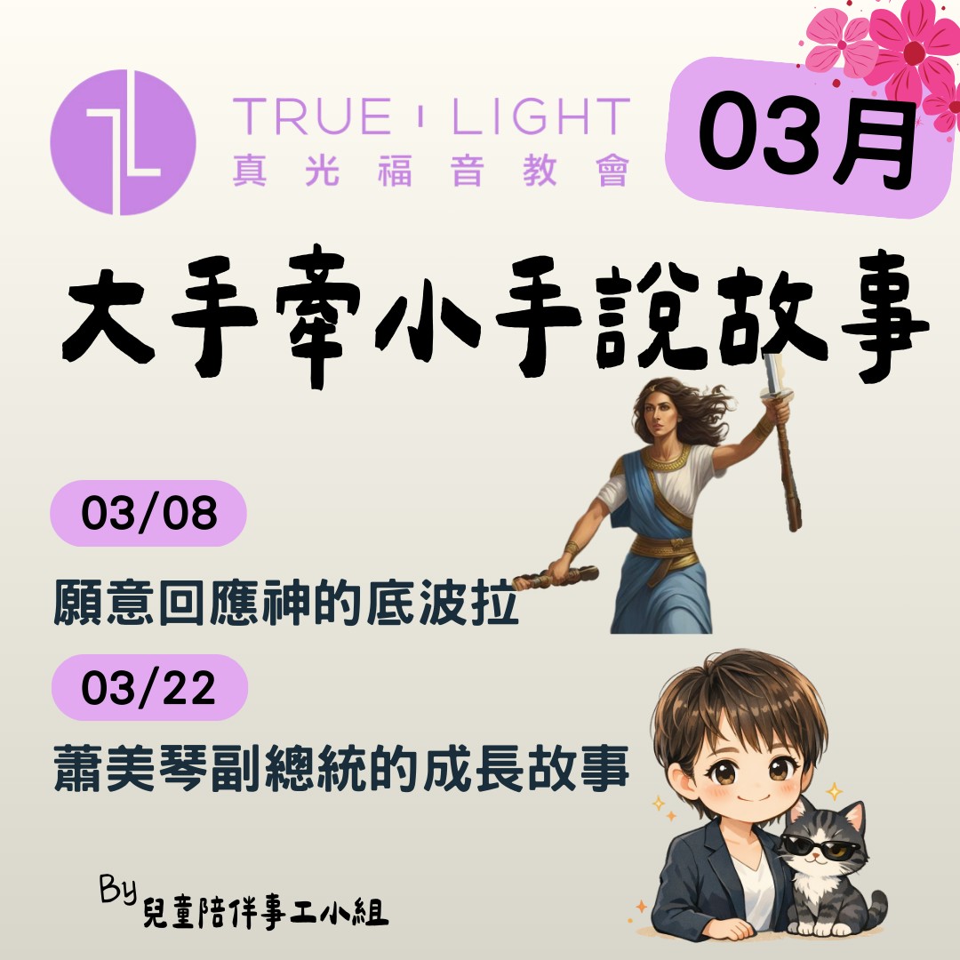 迎來一年一度婦女節的這天,將透過聖經人物——以色列的女士師底波拉,帶孩子認識「勇敢、智慧、被神使用」的主題。 底波拉聽從上帝的話、全心順服,帶領百姓戰勝長期壓迫以色列的迦南王。這故事提醒我們:每個人都有不同的角色與恩賜,重要的不是「是否符合性別期待」,而是「是否願意回應神」。在神眼中,每個孩子都可以是小小底波拉!