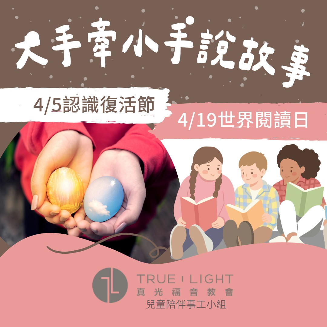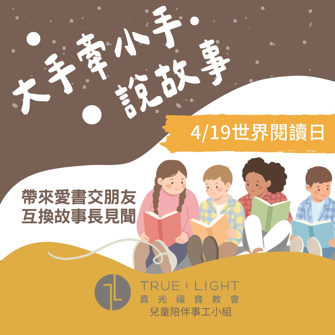 這一天,我們不只是聽故事的人,也要成為那個「說故事的人」。邀請每一位小朋友,帶著一本你最喜歡的書來到真光 B1,跟我們分享這本書帶給你的快樂、勇氣或溫暖。我們相信,每一本書都像一盞燈,當我們分享故事,就是在彼此的心中點亮不同的光,看見上帝在每個人生命中放下的奇妙禮物。